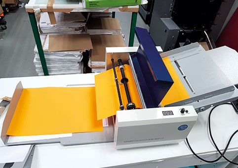 Utilisée pour la carterie, plaquettes commerciales et tout ce qui demande un rainage (pré-plis sur papier épais).